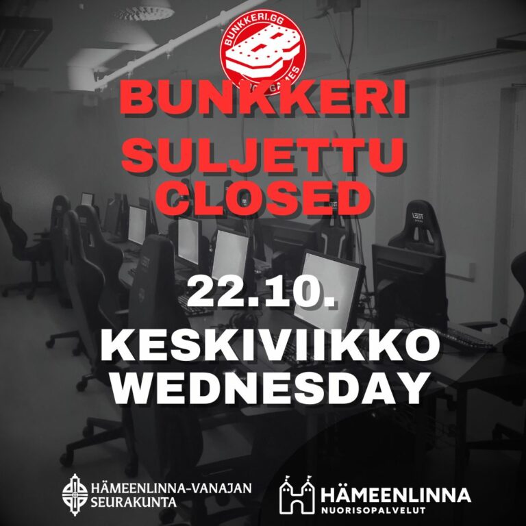 Bunkkeri on suljettuna keskiviikkona 22.10.