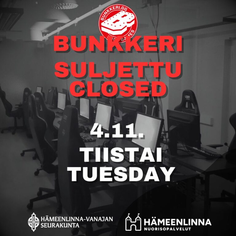 Bunkkeri on suljettuna tiistaina 4.11.